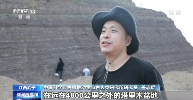 中国科学院古脊椎动物与古人类研究所 山显任:这些红色的岩层,它是在一种浅海的氧化的环境下形成的,我们通过在野外追索这些红层的分布,就可以大致确定当时扬子海海洋的一个范围。