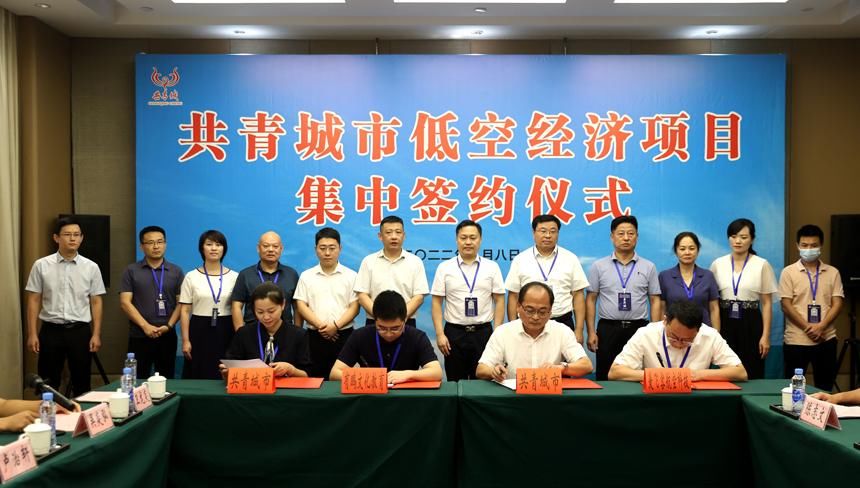 共青城市低空经济项目集中签约仪式活动现场图。